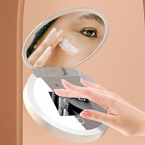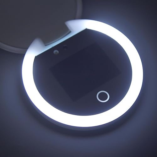 Miroir Cosmétique Keenso, Miroir Cosmétique Double Face, Miroir Compact Rechargeable, Grossissant 2X, avec Caméra pour Test de Protection Solaire