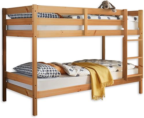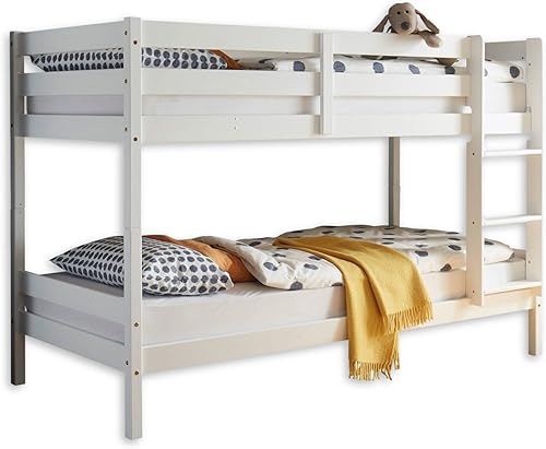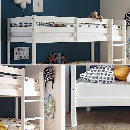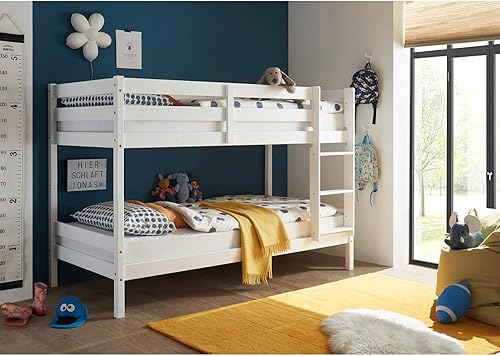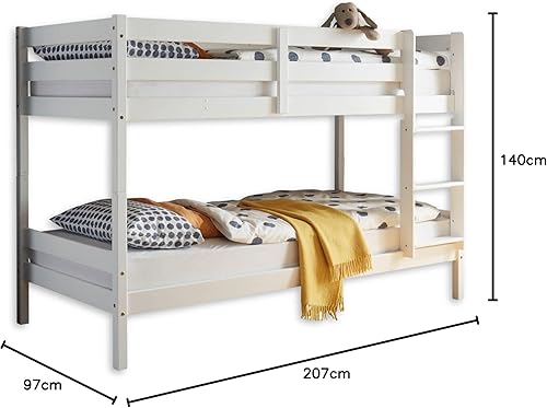 Moritz Lit Superposé Moderne 90 x 200 cm Pour Enfants, Peu Encombrant, Bois De Pin Blanc Massif, Blanc, 97 x 140 x 207 cm