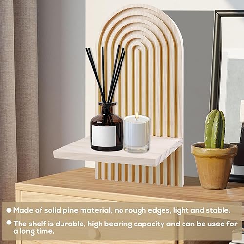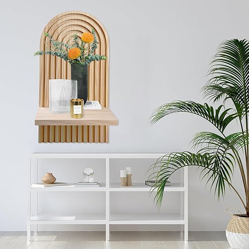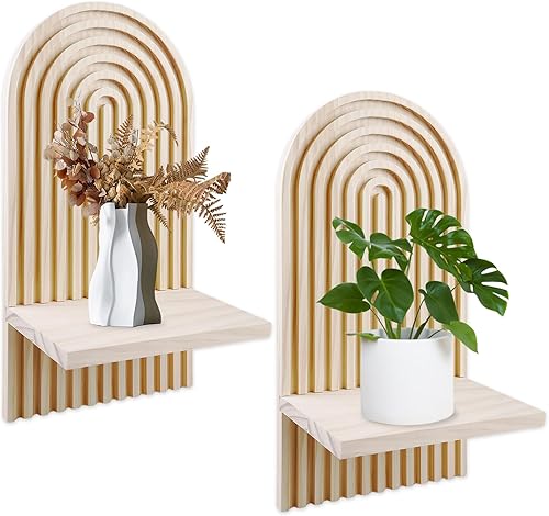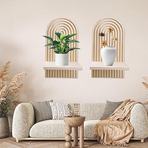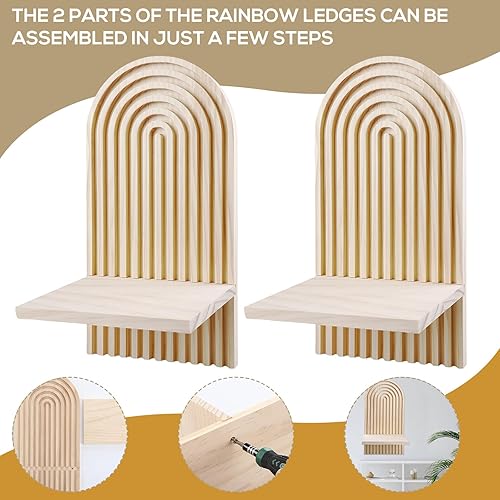 BYZESTY Lot De 2 Étagères Murales en Bois Arc-en-Ciel Boho Planche en Bois Décorative Bohème Étagères Flottantes en Bois Etagere Murale pour Salon Chambre Bureau Salle De Bains Et Cuisine