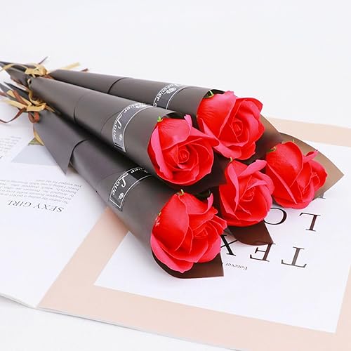 DHWEKU 5 Pièces Roses rouges rose artificielle en Soie pour Arrangement de Mariage, fête, décoration de la Maison Fleur Sechees Decoration pour Scrapbooking Bougie Bricolage Résine Saint-Valentin