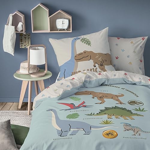 Jurassic World SICJU Parure de lit Enfant | 100% Coton | Oeko-TEX | Housse de Couette 140x200cm+1 Taie d'oreiller 63x63cm | Imprimé Garçon | Bleu
