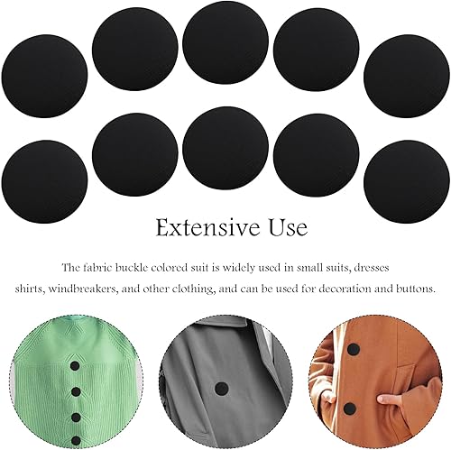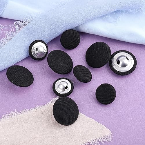 Lot de 10 boutons noirs avec revêtement en tissu - Abeillo - 20 mm, tige ronde en métal - Boutons à coudre pour costumes, robes, chemisiers - Boutons vintage en tissu pour projets de bricolage - Noir
