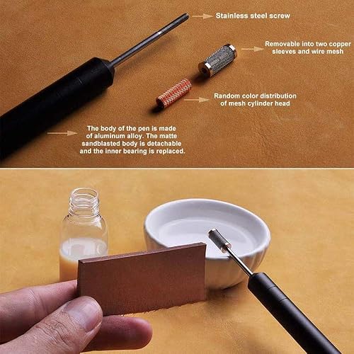 Puissant Tools Leder-Kante Stift, Edelstahl Leder Ölstift Edge Dye Pen Stift Sandelholz Griff Rouleau de teinture à bord supérieur applicateur de