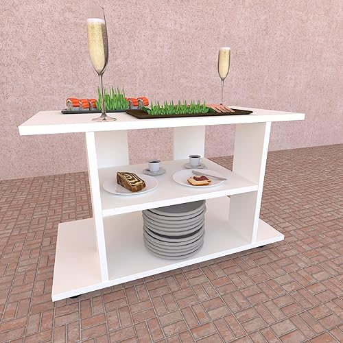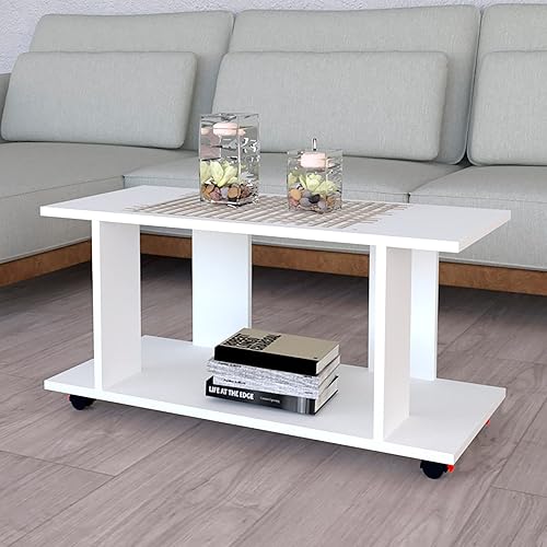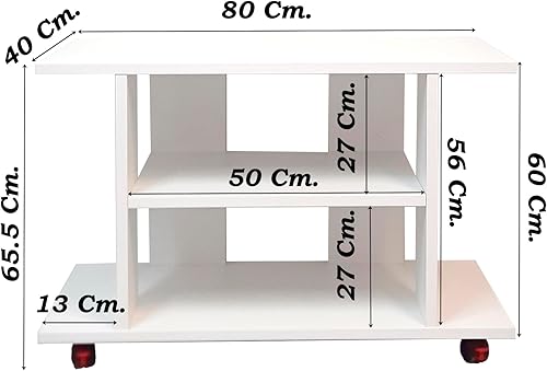 Henor Table à roulettes Bois FSC® Mod.Pilar. 80 x 40 x 65.5 cm. Roues rotatives à 360º avec Frein Graphite