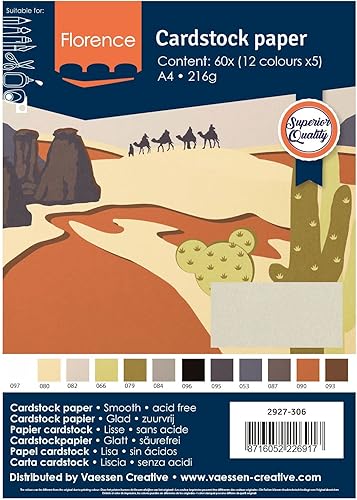 Florence Papier Cartonné Lisse - A4 - Earth Tones - 22 x 5 feuilles - 216 g/m² - pour Scrapbooking, Carterie, Perforation et Faire Part de Mariage