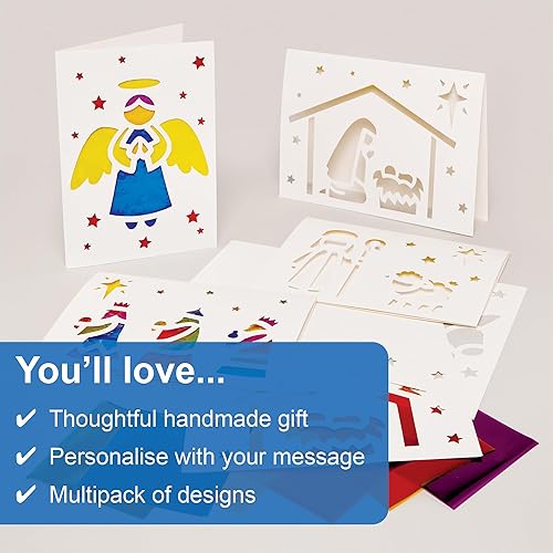 Baker Ross FX891 Kit de cartes de la Nativité en verre teinté - Lot de 6, kits de décoration de Noël pour les enfants