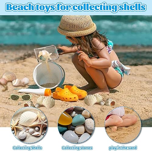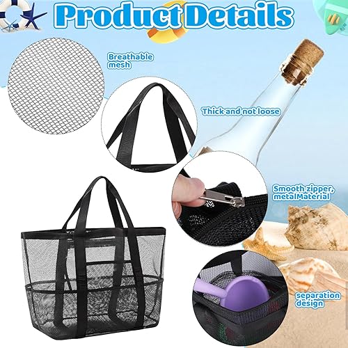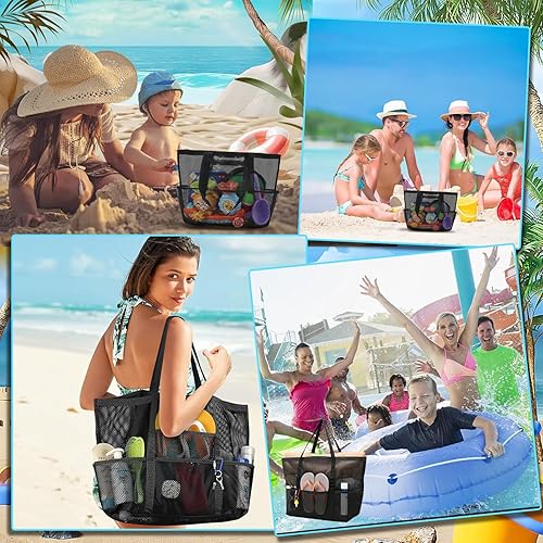 Fizdoqg Ensemble de sacs pour jouets de plage - Grand sac de plage - Noir - Sac en filet - Sac à sable avec pelles à sable - Pour ramasser les coquillages