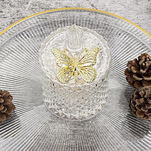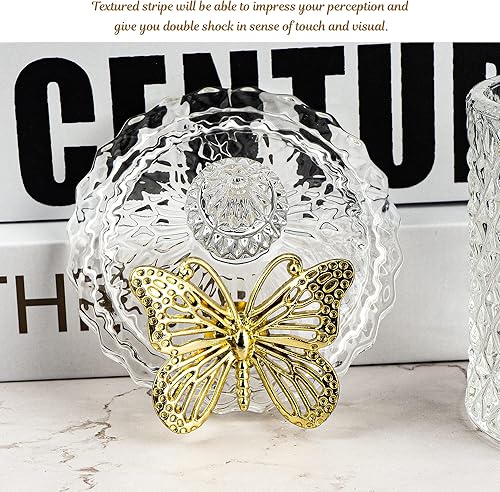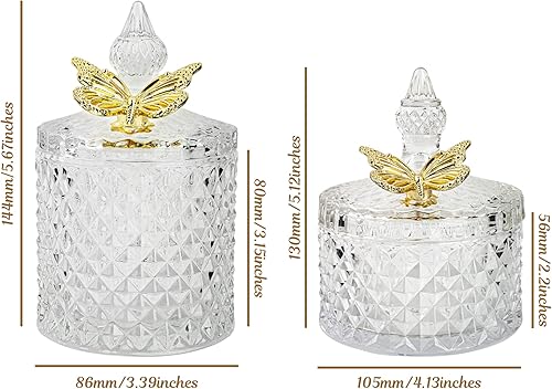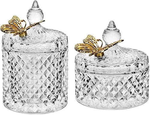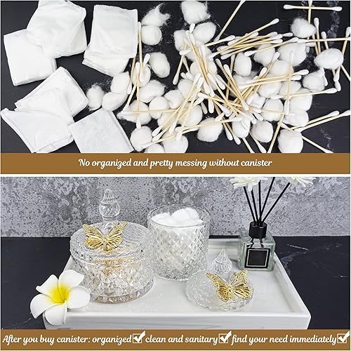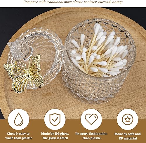 Ezebesta Lot de 2 boîtes de salle de bain vintage avec couvercles papillon - Petits bocaux épais en verre transparent - Distributeur de Qtip pour ranger des boules de coton et des tampons