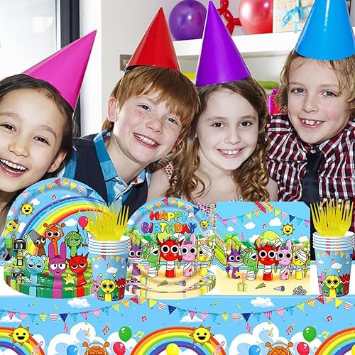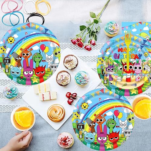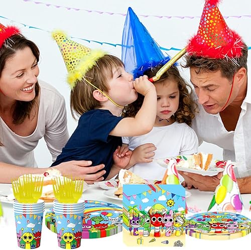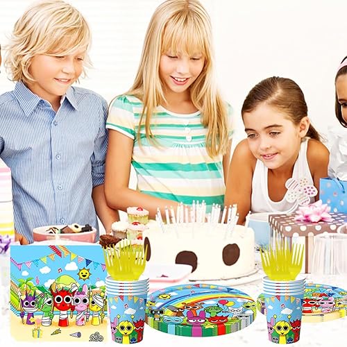 PEAJPBS Vaisselle de Fête Sprunki, Vaisselle d'Anniversaire Cartoon, Set de Vaisselle pour jeux de Dessins Animés, Assiettes Gobelets Serviettes Nappes, 61PCS