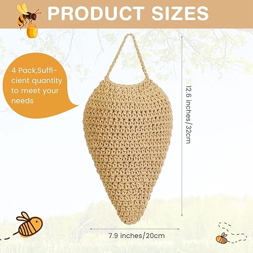 Pinafresa Lot de 2 Grands Nids de Guêpes au Crochet à Suspendre, Faux Nid de Guêpes, Leurre à Suspendre, Dissuasion des Guêpes
