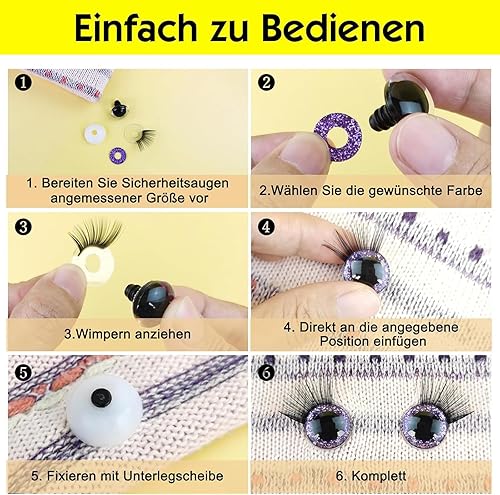 YouXiaor Yeux de Securite Amigurumi 30mm,10PCS Yeux pour Peluche Paillettes Amigurumi Kit avec Cils Clignotant Yeux Securite Amigurumi Crochet Animal Doll Poupée Jouets Bricolage Artisanat