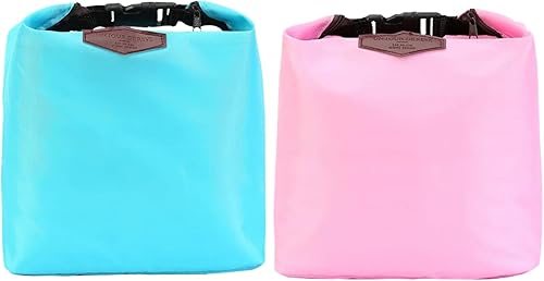 Ensemble de 2 Sacs à Fermeture Éclair - Sacs à Lunch Thermiques Élégants pour Chaud/Froid - pour Voyage, Bureau, Pique-nique - Lot de Bleu Clair (bleu) et Rose (rose) - Imperméables et Légers