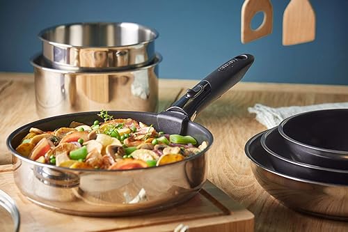 SITRAM - 713513 - Sauteuse sitramovible Arpège en inox Ø24cm avec revêtement anti-adhérent - avec couvercle vapeur en verre - tous feux DONT induction