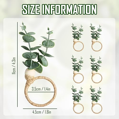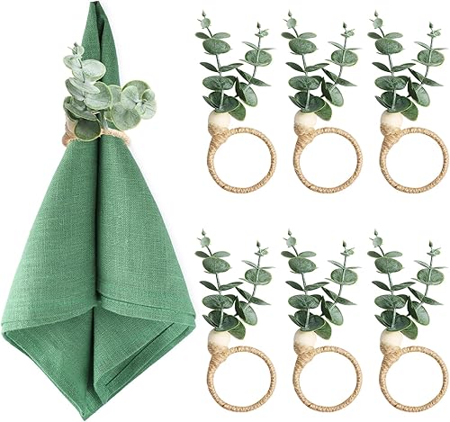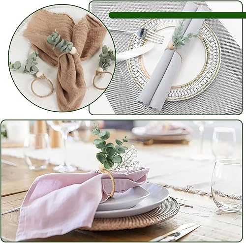 Lot de 6 ronds de serviette en eucalyptus, ronds de serviette rustiques, style ferme, bohème, perles en bois pour Thanksgiving, Pâques, Noël, décoration de table de mariage