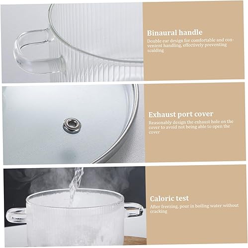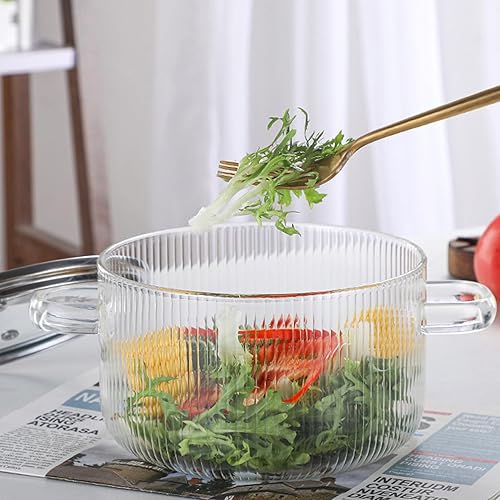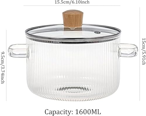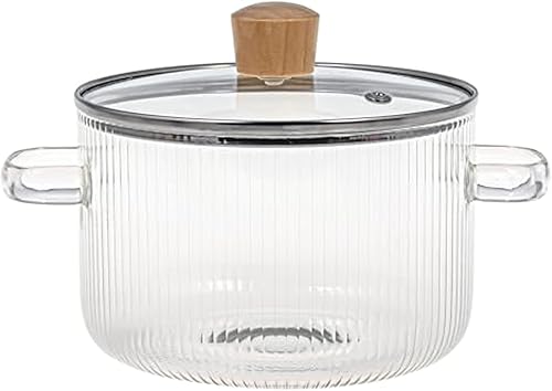 Marmites en Verre pour la Cuisson, marmite nervurée en Verre Borosilicate de 1,8 L résistante à la Chaleur avec poignées, Batterie de Cuisine en Verre Transparent