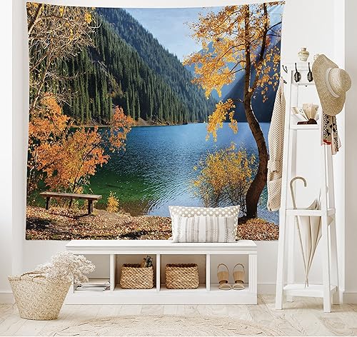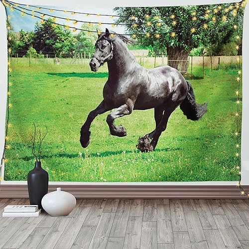 ABAKUHAUS Médiéval Tapisserie, Moyen Age Armoiries, Décoration Murale en Tissu pour la Chambre à Coucher Le Salon Le dortoir, 230 cm X 140 cm, Teal Noir