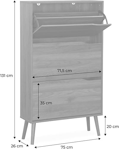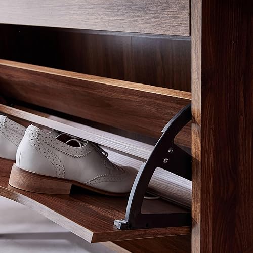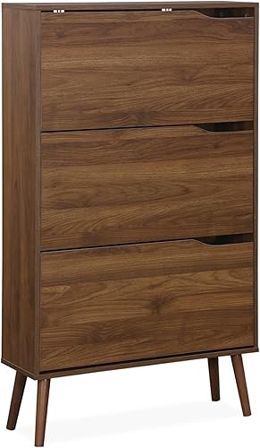 sweeek - Meuble à Chaussures scandinave décor Noyer 3 Portes abattantes capacité 18 Paires de Chaussures
