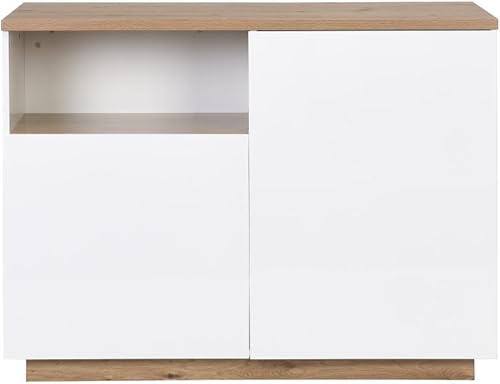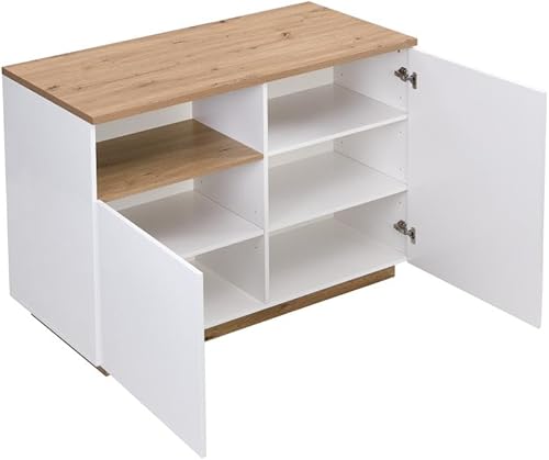 Vente-unique - Ilot Central de Cuisine avec 2 Portes et 1 Niche en MDF - Naturel et Blanc - CORELINA
