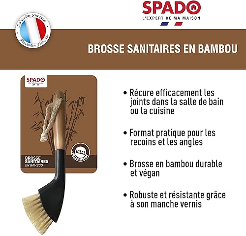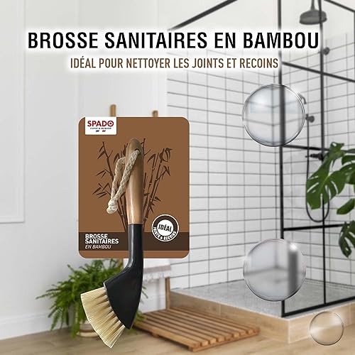 SPADO - Brosse Nettoyage Pour Sanitaires - Idéale Joints, Angles et Recoins - En Bois de Bambou Durable - Fabrication Française