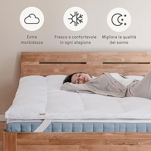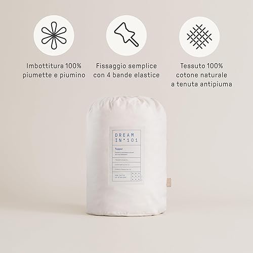 DREAMIN *101 - Topper pour lit double 200 x 200 cm en duvet respirant, correcteur de matelas 4 saisons avec coins élastiques - Topper matelas haut 6/8 cm frais et doux pour un meilleur confort de nuit