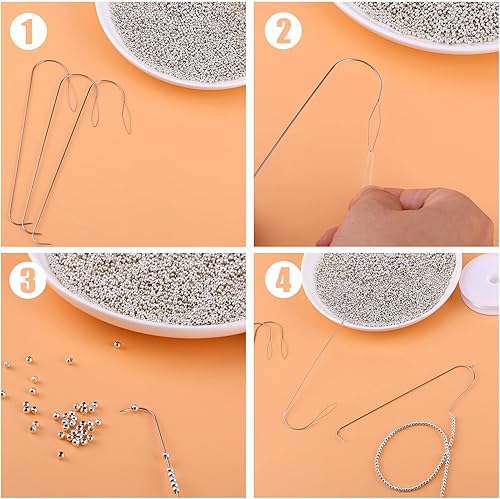 SAVITA 8 Pièces Aiguilles Incurvées pour Perles, 13,3 cm Aiguilles à Perles Acier Inoxydable Aiguille à Gros Chas avec Poignée Aiguille à Perle pour Fabrication de Bijoux Bracelets Colliers
