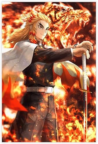 FrySky Kyojuro Rengoku Demon Slayer Poster 3 sur toile Décoration murale pour salon, chambre à coucher, style sans cadre, 30 x 45 cm