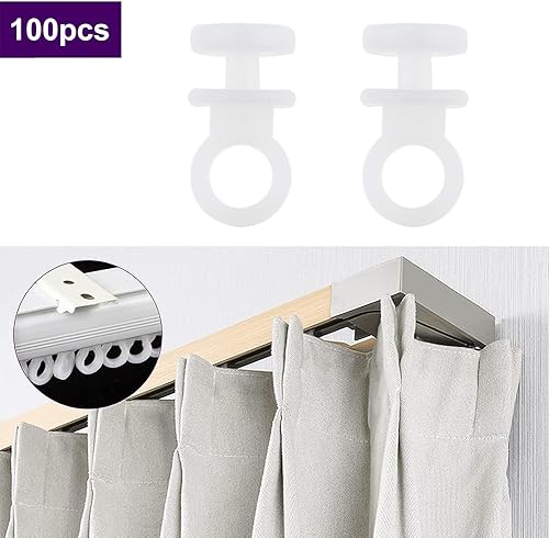 Coulissant Crochet De Rideau Rail Glisseur, Blanc Rideau Piste Glisseur, Patins À Rideaux, 100 Pièces Glisseurs De Rideau, Crochets Coulissants en Plastique Blanc pour Anneaux, Rideaux Et Rails