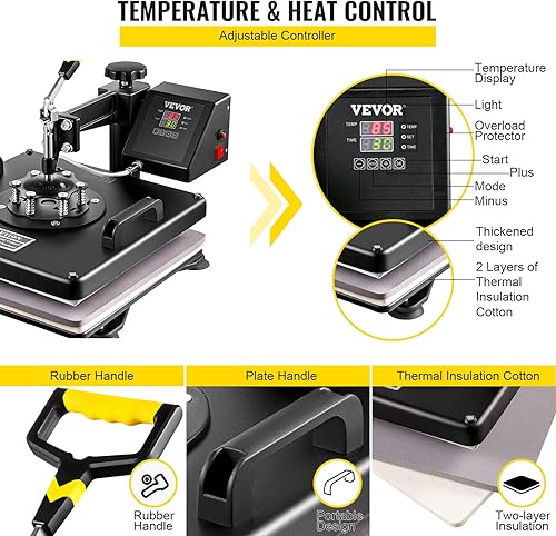 VEVOR Machine De Presse Chaude 5 en 1 Double Affichage 38 x 38CM Presse De Chaleur 1250W Presse de transfert Minuterie Electronique Contrôle Température Automatiquement Bricolage