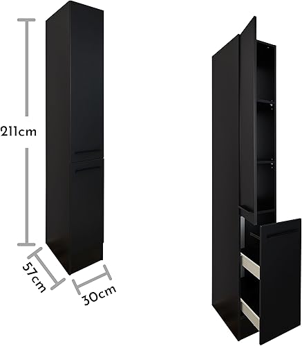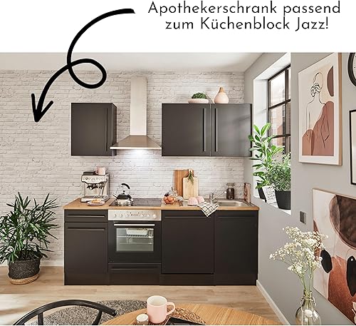 Stella Trading Jazz 8 Armoire Moderne pour Pharmacie de Cuisine, Noir Mat, spacieuse, avec Beaucoup d'espace de Rangement, Bois d'ingénierie, Apothekerschrank