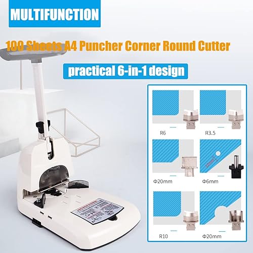 HYQNG Perforatrice d'angle Arrondie 6 en 1 Coupe-Angle 100 Feuilles Perforatrice d'angle Ronde avec R3,5 mm R6 mm R10 mm, Coins arrondis, Demi-Cercle, Matrices interchangeables de Perforation de 6 mm