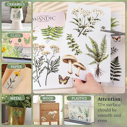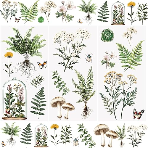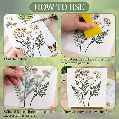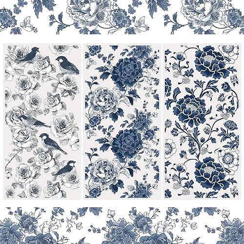 WANDIC Lot de 3 feuilles d'autocollants de transfert imperméables sur le thème des fleurs bleues pour loisirs créatifs, scrapbooking, albums photo, 15 x 30 cm