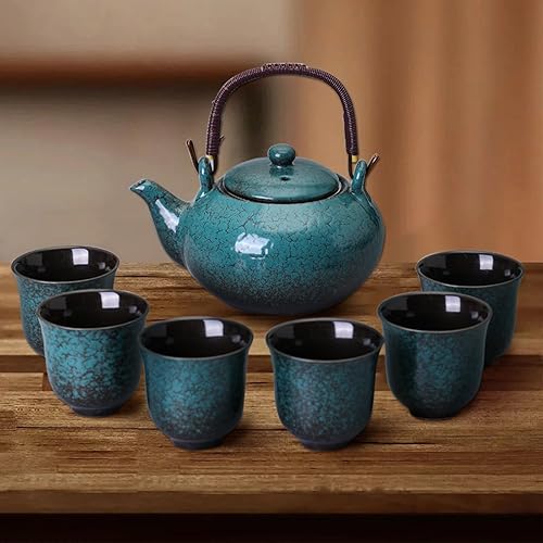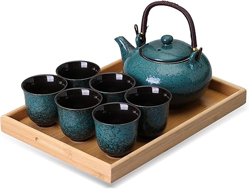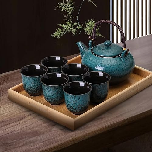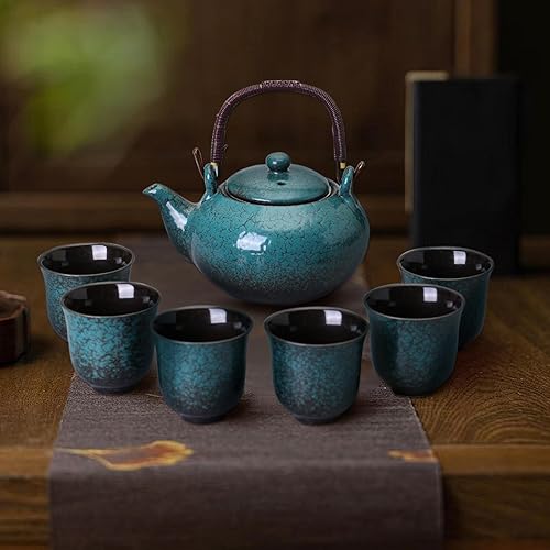 Service à thé en porcelaine japonaise, théière de 760 ml et 6 tasses de 110 ml, service à thé chinois en céramique, théière asiatique, cadeau pour les amateurs de thé (vert sapin)