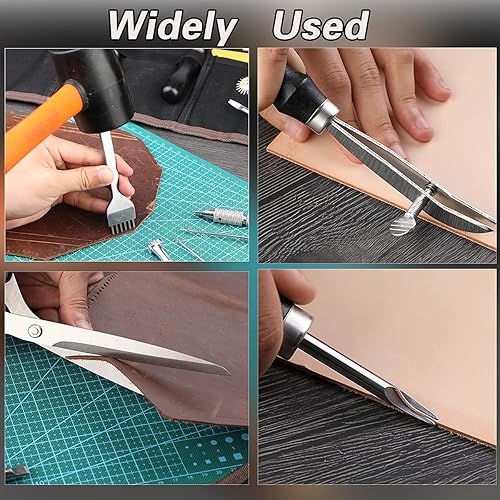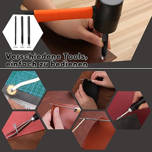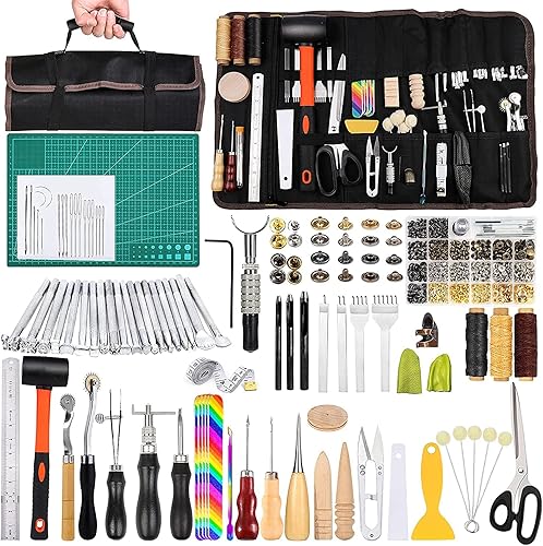 Kit de bricolage pour cuir, 328 pièces, outils de bricolage, groover, rivets pour cuir, outil de tampon pour cuir, fil à coudre, aiguilles à coudre et autres outils d'artisanat pour le cuir à la main