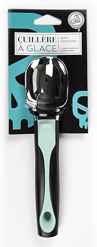 BIRAMBEAU - B.BAD - Cuillère à Glace avec Poussoir - Nylon & Silicone - Couleur : Noir & Turquoise - Idéal Glace et Sorbet - Service Facile, Verte