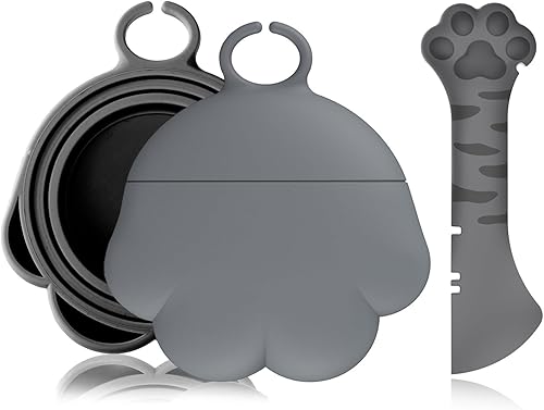 PHOGARY Couvercle Boite de Conserve, Cuillère pour Boîtes, Universelle Couvercle Silicone Alimentaire pour Boîtes, Stockage Nourriture pour Animaux de Compagnie, Cadeau (Gris)
