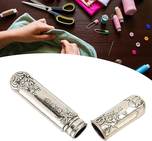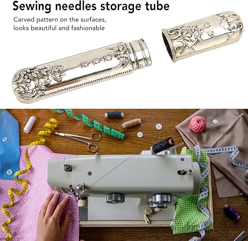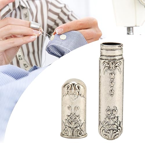 AKLOSIPY Étui à Coudre Portable Vintage en Métal Porte-aiguille à Broder et Tube de Rangement pour Couture à la Main Boîte de Rangement Argentée