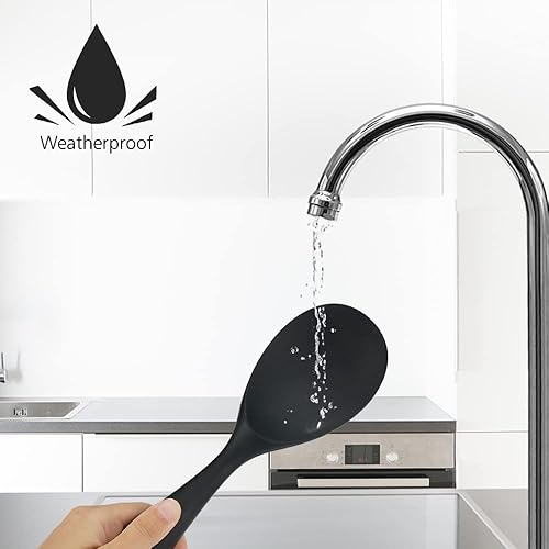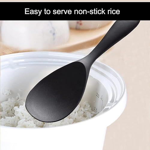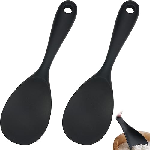 Cuillère de Service à Riz 2 Ensembles,Noir Cuisine Cuisson Cuillère à Riz en Silicone Antiadhésifs de Qualité Alimentaire Revêtement,Pour Brasser,La Cuisine, La Cuisson, Le Mélange Et Les Outils