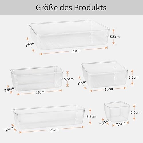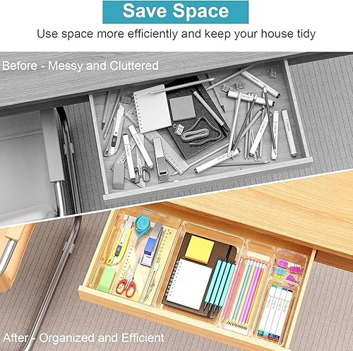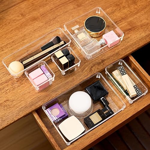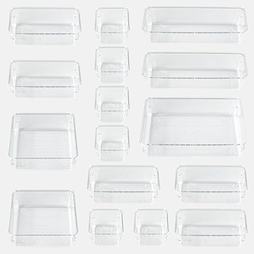 Generico Organiseur de tiroirs de 16 pièces, boîtes de rangement en plastique transparent de 5 dimensions, séparateurs pour tiroirs empilables pour salle de bain, cuisine, astuces