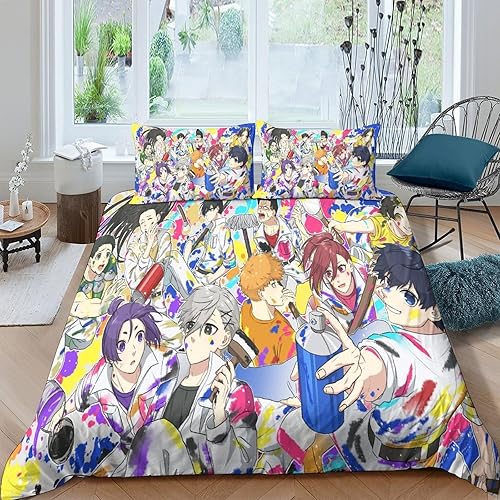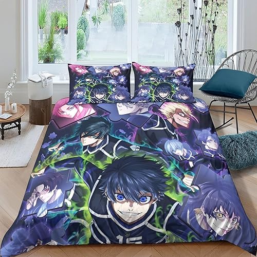 SUFFERBOW Blue Lock Housses De Couettes pour Adultes Et Enfants Housse De Couette 3D Imprimé Football Anime Parure De Lit E avec Fermeture À Glissière Microfibr avec Taies 2 Pièces Single(135x200cm