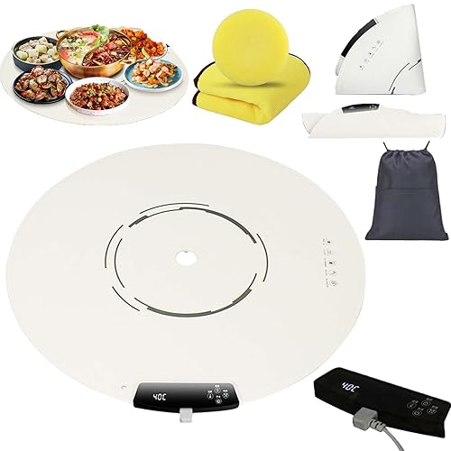 Portable Electric Round Warming Tray, 25.6” Round Warming Mat for Food Extra Large, Silicone Warming Mat for Food Round, Foldable & Roll up Silicone Heating Mat Pad, Adjustable Temp & Time (1pc)