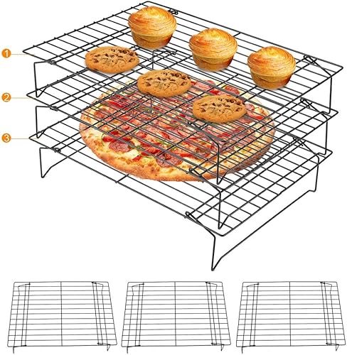Grille de Refroidissement, 3 Grilles de Refroidissement Empilables en Acier Inoxydable, Plateau de Cuisson sans Bâton pour Biscuits, Gâteaux, Pain