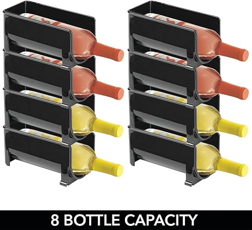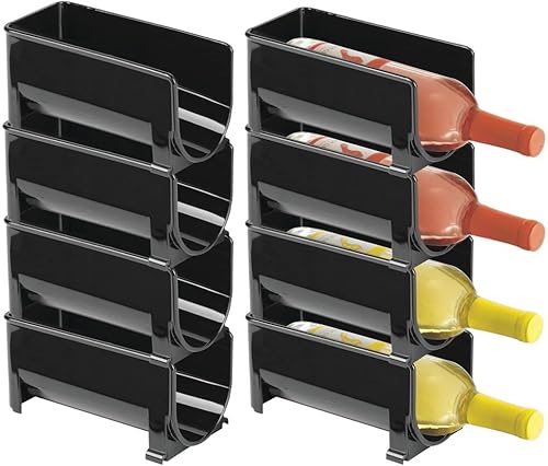 mDesign Range Bouteille Moderne (Lot de 8) – casier à Bouteilles superposable pour Bouteilles d'eau et gourdes – Support pour Bouteille de vin pour la Cuisine ou Le Garde-Manger – Noir