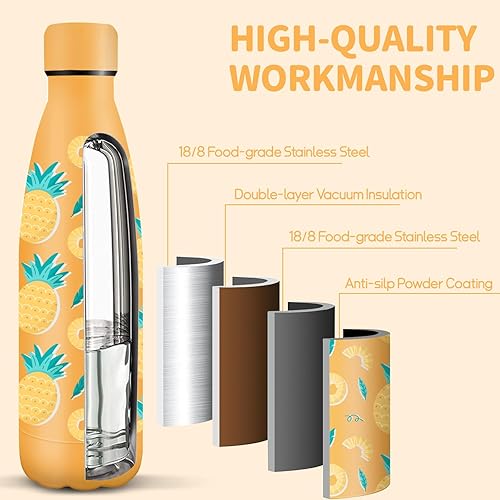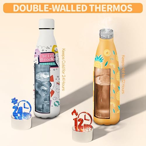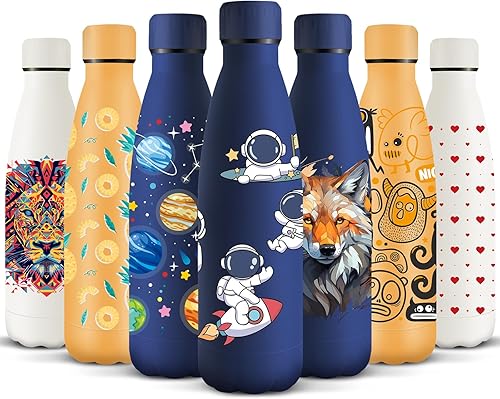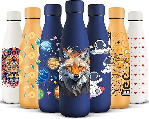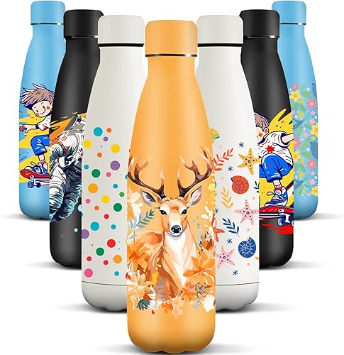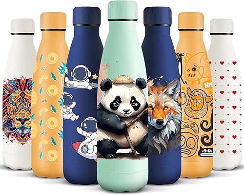 HoneyHolly Gourde Isotherme, Acier Inoxydable 18/8, Bouteille Isotherme, 500ML Sans BPA, Gourde Inox Enfant, Étanche Double Isolation, Gourde Inox pour Le Camping, Les Écoles, Les Gymnases