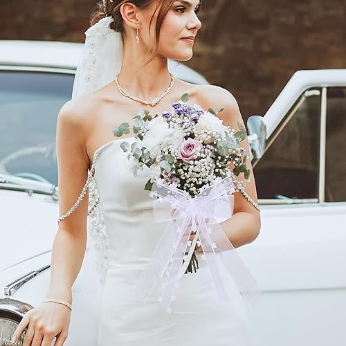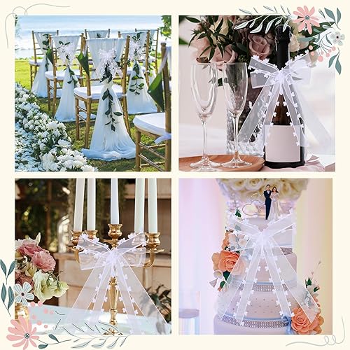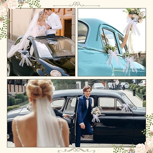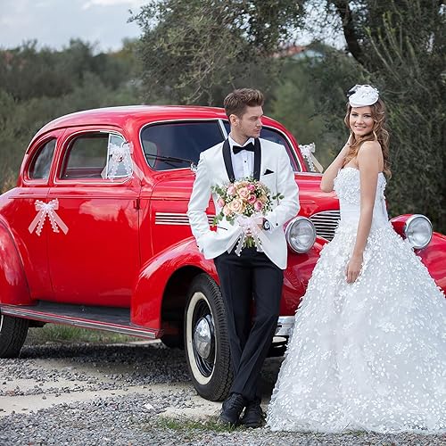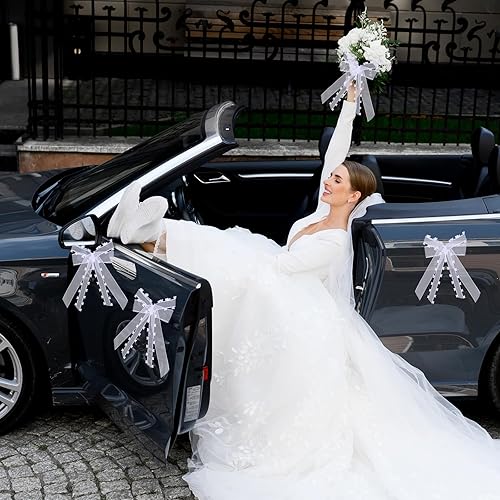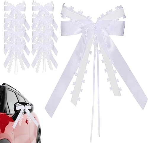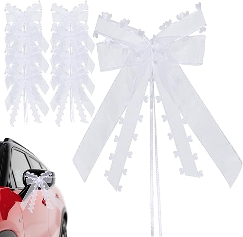 LQTSLFM Nœud de Mariage Voiture, 10 Pièces Nœuds Voiture Mariage Blanc, Tulle Nœud pour Déco Voitures, Nœuds avec Bords en Cœur, pour Voiture, Cadeaux, Bouquet, Décorations de Mariages (Blanc-A)