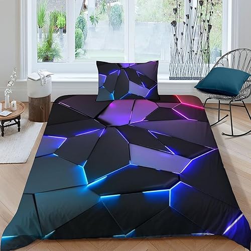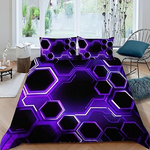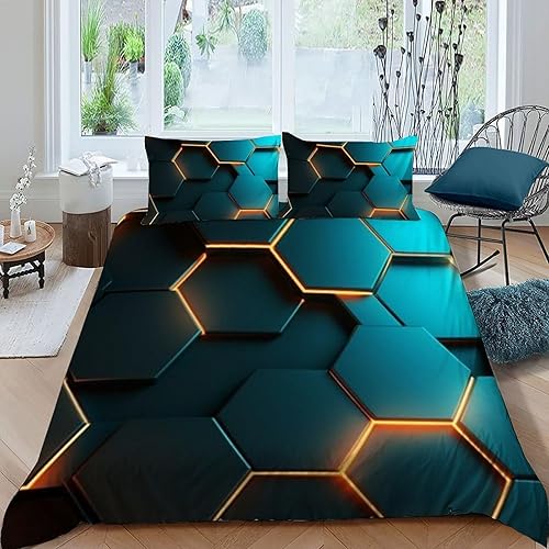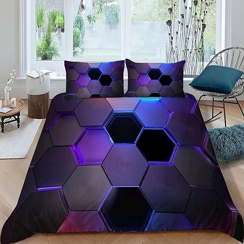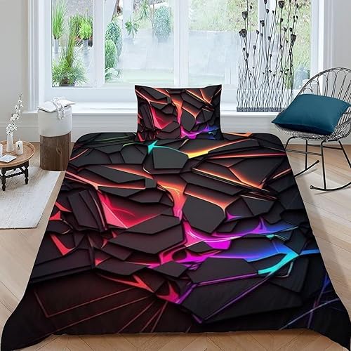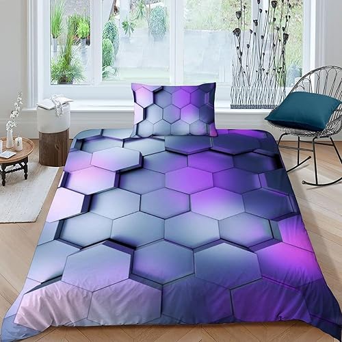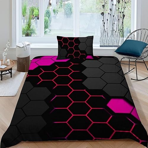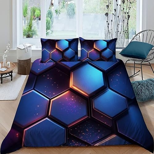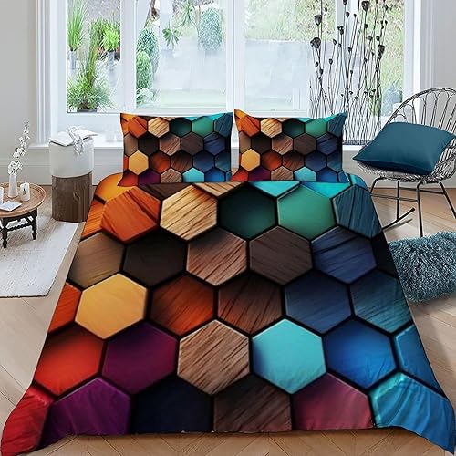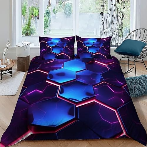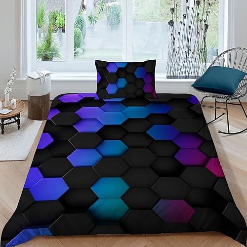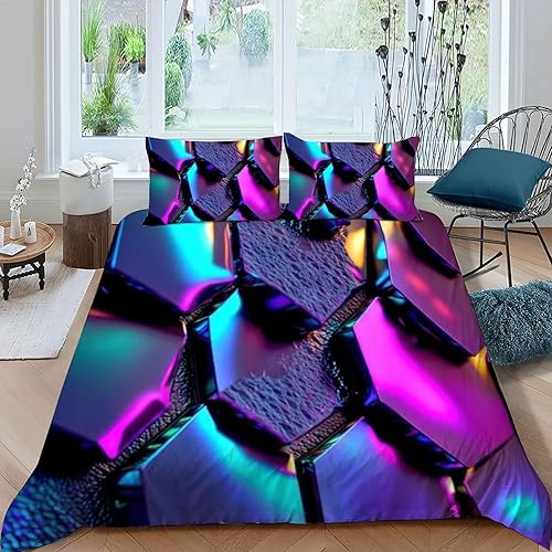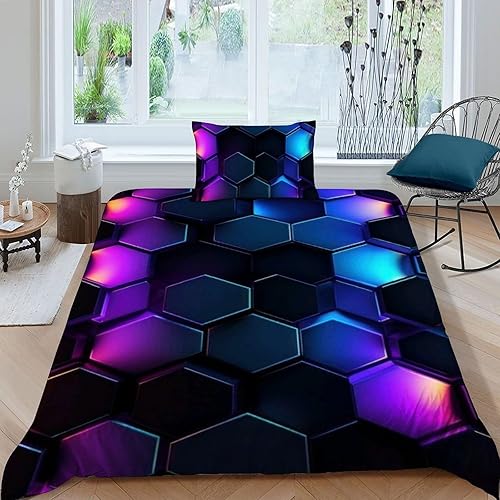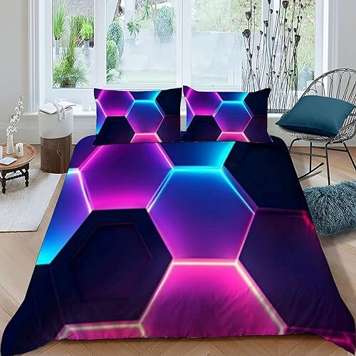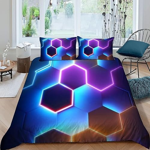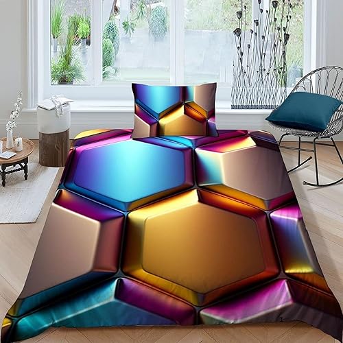 HOGDISAJD Polygones colorés Parure De Lit pour Enfants Les néons L'Hexagone 3D Imprimé Parure Housse De Couette Soft Microfibre Décor 3Pcs Double(200x200cm)