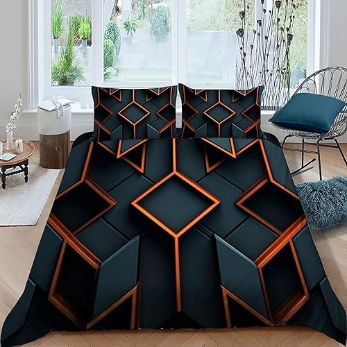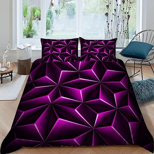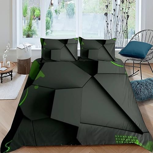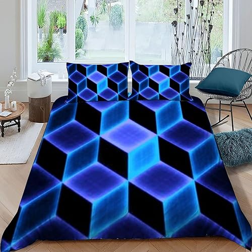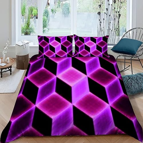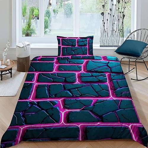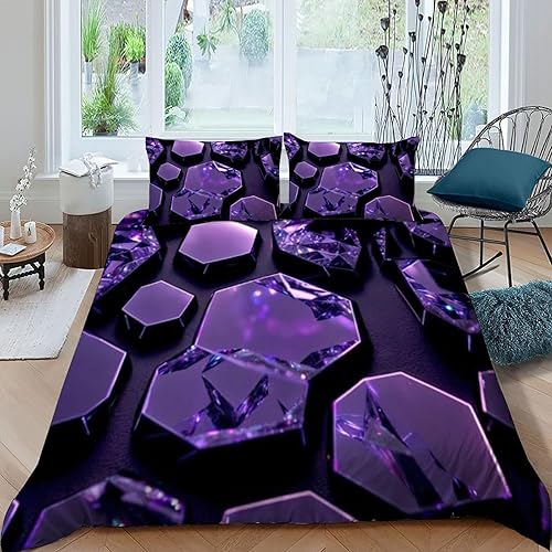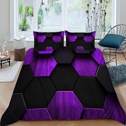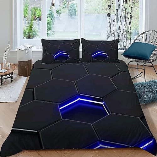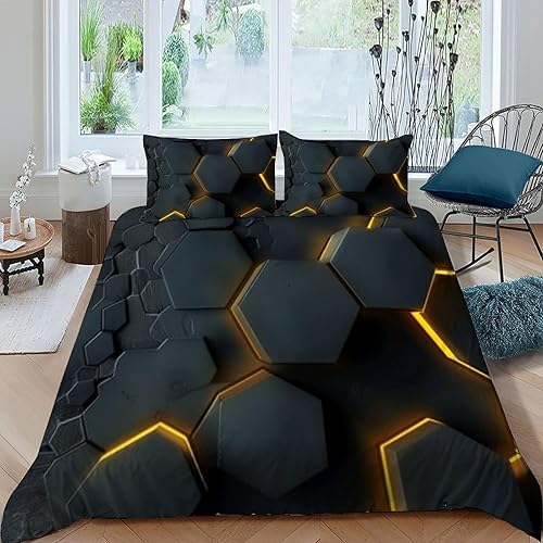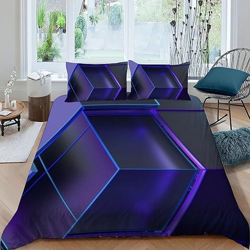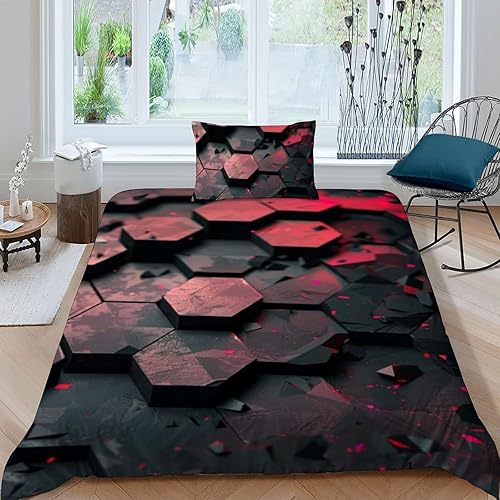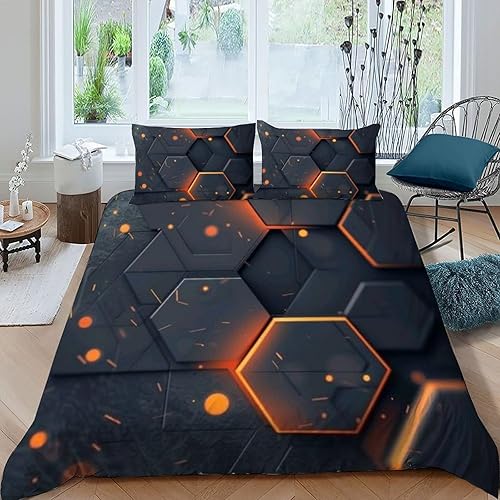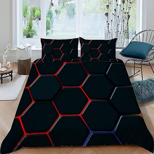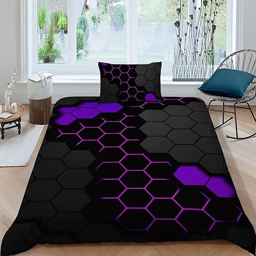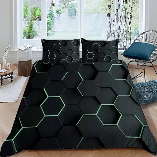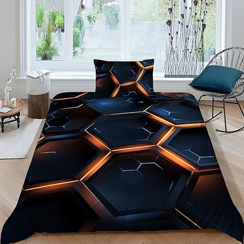 HOGDISAJD Polygones colorés Parure De Lit pour Enfants Les néons L'Hexagone 3D Imprimé Parure Housse De Couette Soft Microfibre Décor 3Pcs Double(200x200cm)