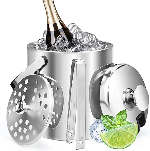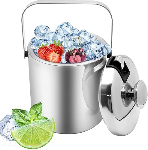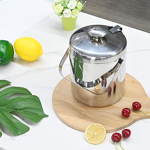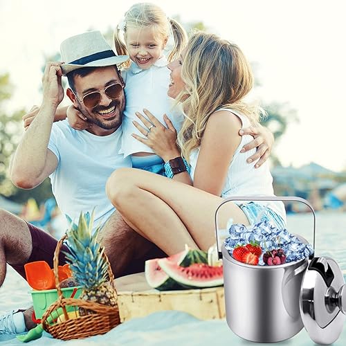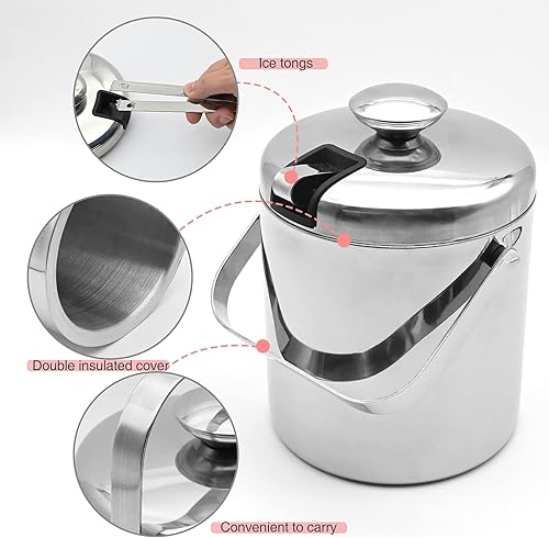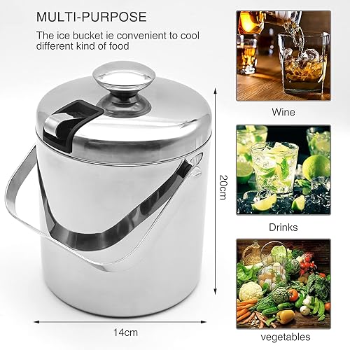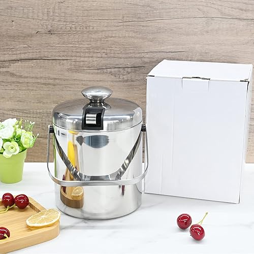 Seau à glace, en acier inoxydable, 1,6 l, petit tonneau de bière, outil de bar, porte-granulés, seau à champagne avec poignée de transport portable, pince à glace et couvercle