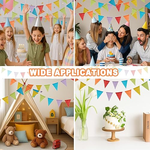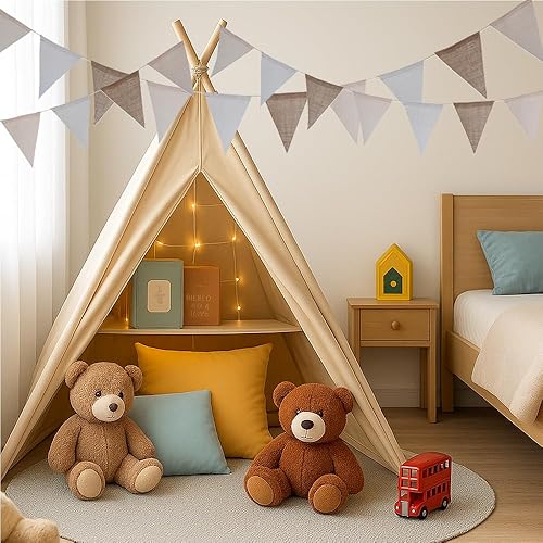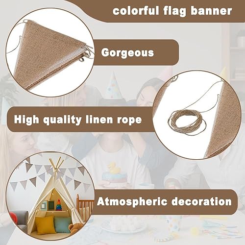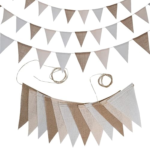 Guirlande Fanion Banderole Pennant Banner Réutilisable Fanion Guirlande pour intérieur et extérieur, Anniversaire, fête prénatale, Mariage, Jardin, décorations de fête à la Maison (Beige)