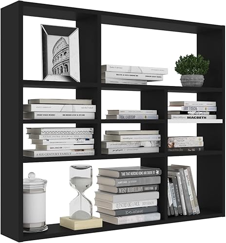 Baziroo Étagère murale, noire, flottante, pour livres, bibliothèque, avec 10 compartiments ouverts, pour le salon, 90 x 16 x 78 cm