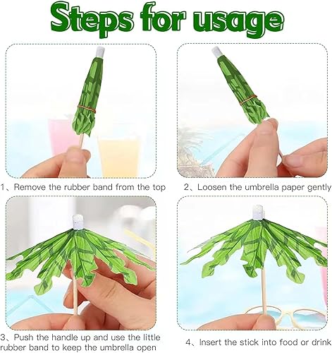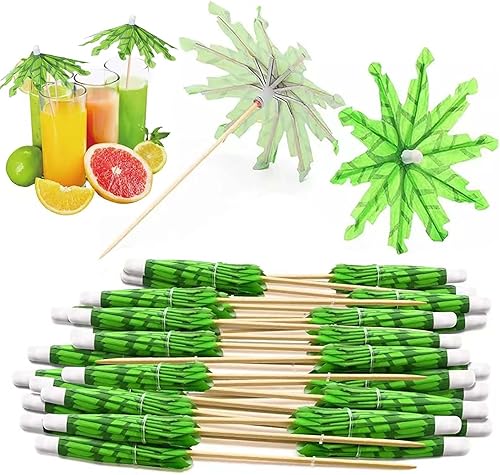 TICKLELY Cocktail Ombrelle - Petits Parasols Miniatures pour Décoration Cocktail, Parapluies à Cocktail, Cure Dent Bois, Pic Apéritif - Ensemble de 100 Pics à Cocktail Décoratifs
